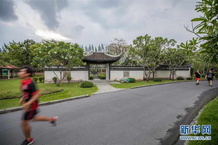 2019年4月3日,鍛煉身體的民眾經(jīng)過泰國曼谷九世王御園內(nèi)的中式園林“智樂園”。這座園林是1988年中國政府贈送給泰國九世王普密蓬的60歲壽辰禮物,“智樂園”之名取自論語“仁者樂山,智者樂水”。 新華社記者張可任攝