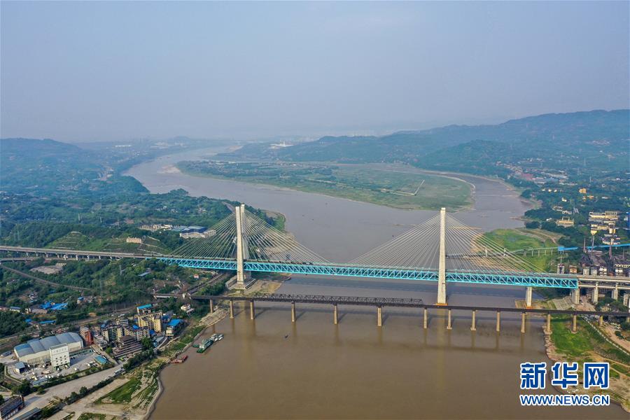 重慶白沙沱長江大橋(下)和新白沙沱長江特大橋(上)(4月23日無人機拍攝)。 4月23日下午5點40分,隨著重慶白沙沱長江大橋通行的最后一列客運列車順利通過,這座“服役”了59年的重慶首座長江大橋進入“退役”倒計時。4月24日后,所有列車將改線經(jīng)距白沙沱長江大橋約100米的新白沙沱長江特大橋通行,新橋“接力”老橋,運輸能力將得到大幅提升。 白沙沱長江大橋于1958年開工,1960年通過首趟列車,是繼武漢長江大橋之后的第二座長江大橋。 新華社記者 劉潺 攝