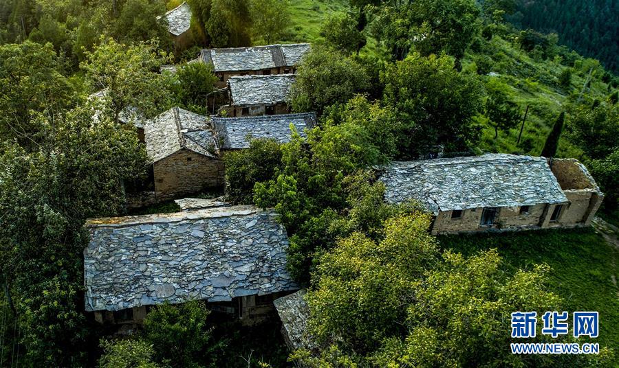 掩映在大山之中的石板房古村落,人去房空(8月7日無(wú)人機(jī)拍攝)。