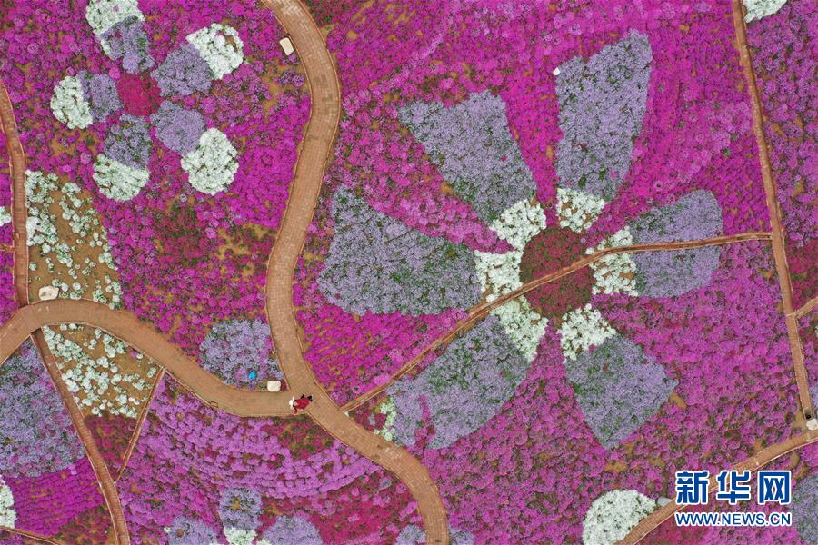 4月24日無人機拍攝的雨花谷景區(qū)。近日,河北省遷西縣雨花谷景區(qū)的芝櫻花盛開,吸引游客前來觀賞。 新華社記者 楊世堯 攝