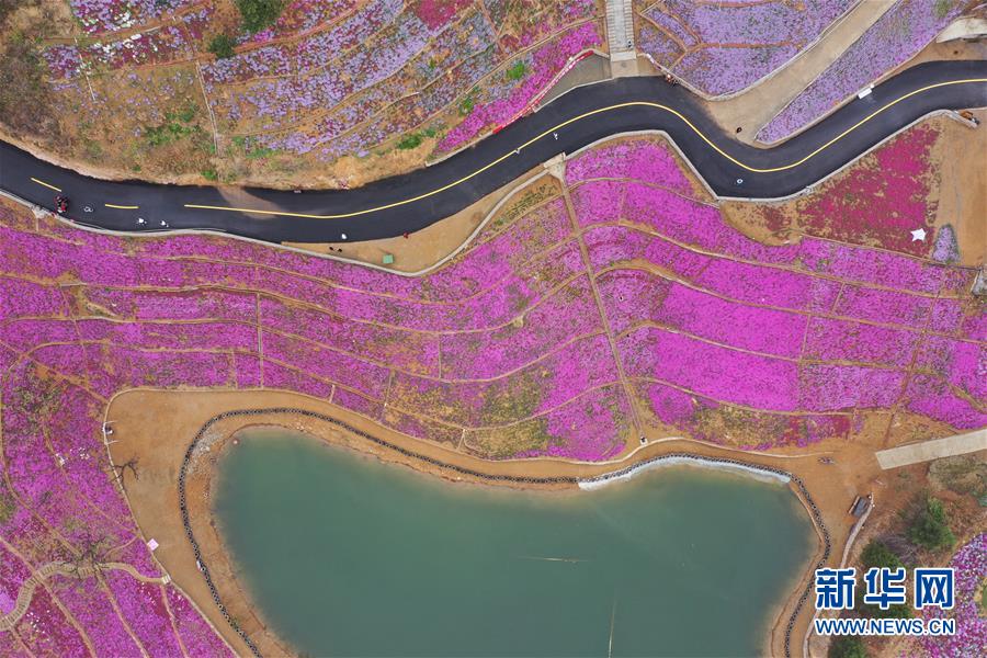 4月24日無人機(jī)拍攝的雨花谷景區(qū)。近日,河北省遷西縣雨花谷景區(qū)的芝櫻花盛開,吸引游客前來觀賞。 新華社記者 楊世堯 攝