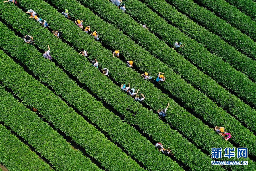 4月25日,小學生在定心茶園體驗春茶采摘(無人機航拍)。當日,來自重慶市巴南區(qū)的300余名小學生來到位于巴南白象山的定心茶園,體驗茶葉采摘、制作,學習茶文化禮儀。近年來,重慶市巴南區(qū)積極發(fā)展茶產業(yè),推動“茶旅融合”“茶教融合”發(fā)展,取得了良好的經濟和社會效益。 新華社記者 王全超 攝