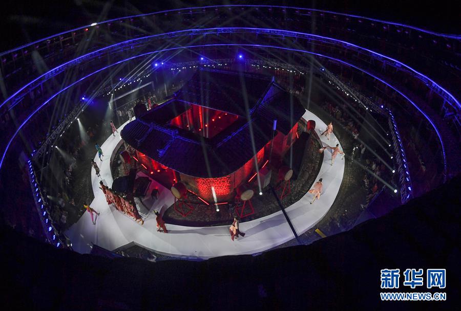 4月27日,表演結(jié)束后,模特在向觀眾致意。 當(dāng)日,土樓光語國際時(shí)尚大秀在福建省南靖縣的土樓裕昌樓內(nèi)舉行。這場融匯文化、時(shí)尚與旅游元素的大秀,通過傳統(tǒng)與時(shí)尚的有機(jī)融合,展現(xiàn)南靖土樓及文化的魅力和風(fēng)采。 新華社記者魏培全攝