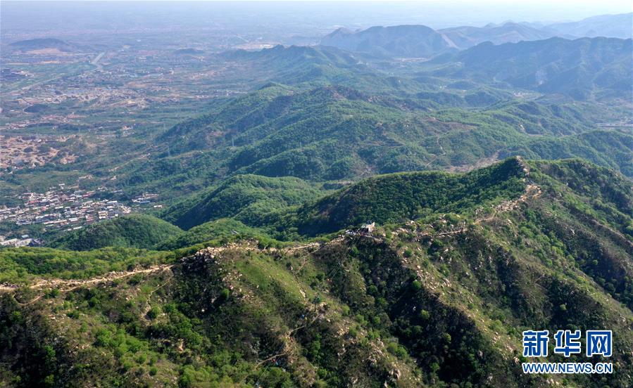這是5月2日拍攝的盤山風(fēng)景名勝區(qū)內(nèi)的群山景觀(無(wú)人機(jī)拍攝)。新華社記者 岳月偉 攝