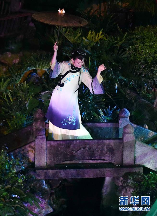 5月5日,演員在福州三坊七巷的水榭戲臺表演歌舞《煙雨坊巷》。 福州三坊七巷為國內(nèi)現(xiàn)存規(guī)模較大、保護較為完整的歷史文化名街區(qū),是中國十大歷史文化名街之一。位于三坊七巷內(nèi)的水榭戲臺經(jīng)常舉辦傳統(tǒng)文化演出吸引游客慕名前來觀賞。 新華社記者 林善傳 攝