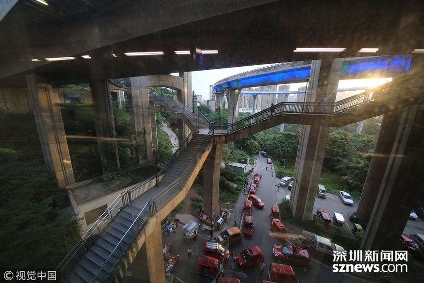 深圳新聞網(wǎng)訊 2018年5月29日,重慶,魔幻重慶又雙叒叕放大招!還有一個獨特的亮點,重慶軌道交通3號線銅元局站,出口由一段長梯銜接上方立交橋和下方的路面,與全國最高城市立交橋蘇家壩立交組成了獨特風(fēng)景,許多游客專門趕來拍照。