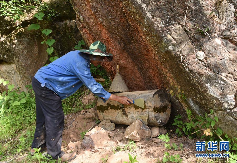 5月10日,在甘肅省隴南市徽縣大河店鎮(zhèn)硬灣村,蜂農(nóng)李成在收蜂后對蜂箱進行密封。 甘肅省隴南市徽縣大河店鎮(zhèn)硬灣村位于秦巴山區(qū)深處,2017年,在當(dāng)?shù)卣姆龀窒拢堁吕铣裁垧B(yǎng)殖農(nóng)民專業(yè)合作社成立,蜂農(nóng)們將傳統(tǒng)養(yǎng)蜂技藝和現(xiàn)代加工方式相結(jié)合,并通過電商等渠道打開銷路,有效帶動了當(dāng)?shù)刎毨Т迕衩撠氈赂?。目前整個合作社共有蜂箱2000余個,每箱每年可帶來三四千元的收入。 新華社記者 馬寧 攝