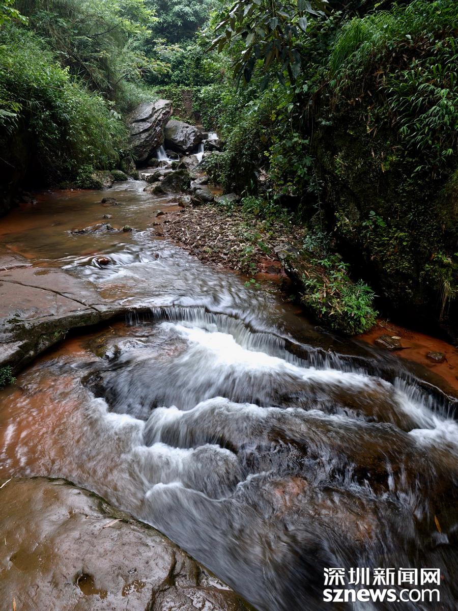 丹霞地貌與大面積古植被和2359 種動植物、珍稀瀕危動植物共存,是赤水丹霞最獨(dú)特的特征。點(diǎn)綴在原始森林、竹海、桫欏之間,猶如紅寶石鑲嵌在綠洲之中,是世界罕見的綠色丹霞景觀。李仁奇  攝