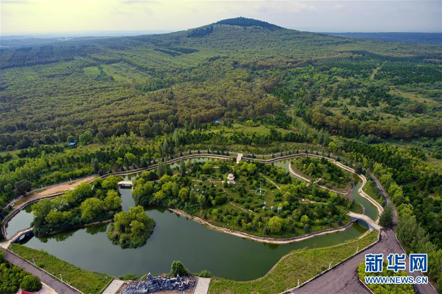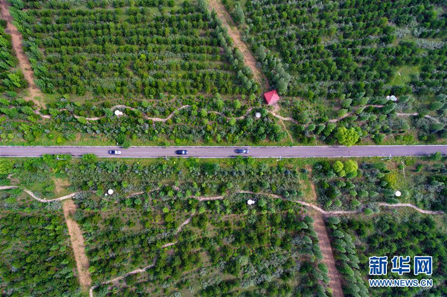 這是2018年8月7日無人機拍攝的山西省右玉縣小南山森林公園。 新華社記者 曹陽 攝