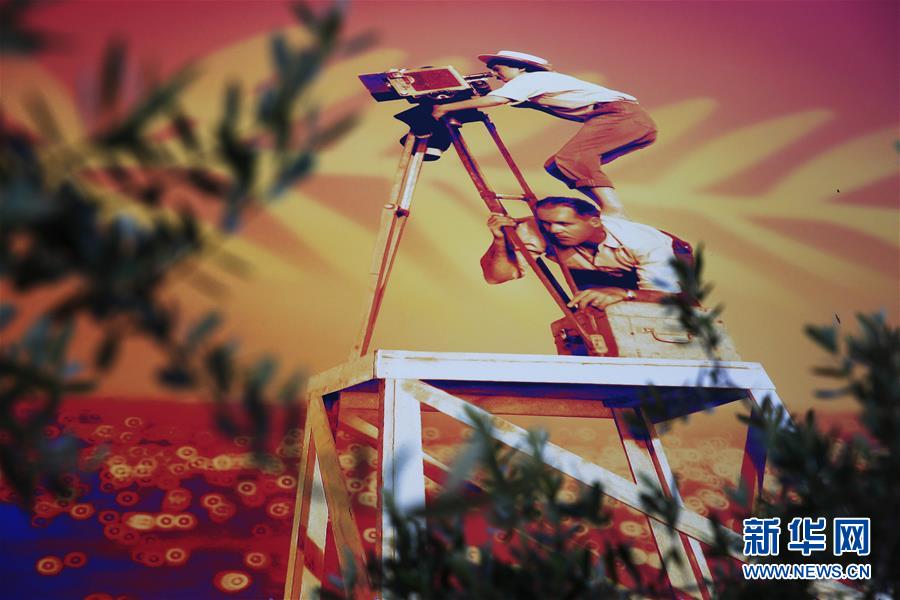 這是5月13日在法國戛納拍攝的第72屆戛納電影節(jié)海報(bào)。
