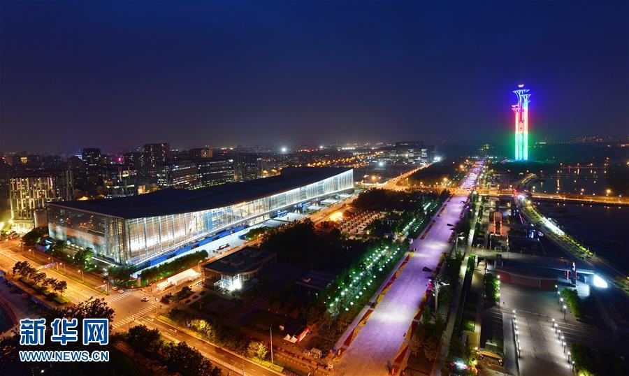 5月14日,國(guó)家會(huì)議中心和奧林匹克塔交相輝映。 當(dāng)晚,一場(chǎng)“空間光影秀”在北京上演。 新華社記者 李賀 攝