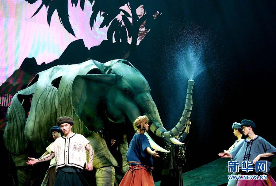 5月15日在上海美琪大戲院拍攝的新版大型人偶舞臺劇《最后一頭戰(zhàn)象》劇照。 當(dāng)日,作為第12屆中國藝術(shù)節(jié)的參演劇目,大型人偶舞臺劇《最后一頭戰(zhàn)象》在經(jīng)過4次硬件技術(shù)升級和故事修改后亮相上海美琪大戲院。 新華社記者 任瓏 攝