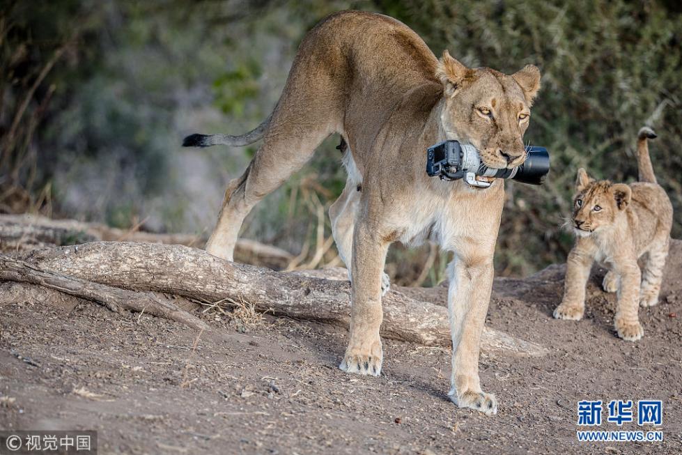近日,非洲博茨瓦納馬沙圖野生動(dòng)物保護(hù)區(qū)內(nèi)一頭獅子叼起攝影師掉落在地上的相機(jī),之后還將相機(jī)交給小獅子們玩耍,看起來(lái)十分好奇,而攝影師非常無(wú)奈。現(xiàn)年57歲的叢林探險(xiǎn)家Barbara Jensen Vorster在一輛越野車上為馬沙圖野生動(dòng)物保護(hù)區(qū)的獅群拍照時(shí),相機(jī)不小心掉到了地上。砰的一聲響驚動(dòng)了母獅子,它向攝影師方向移動(dòng),迫使探險(xiǎn)隊(duì)撤退。(圖片來(lái)源:視覺(jué)中國(guó))