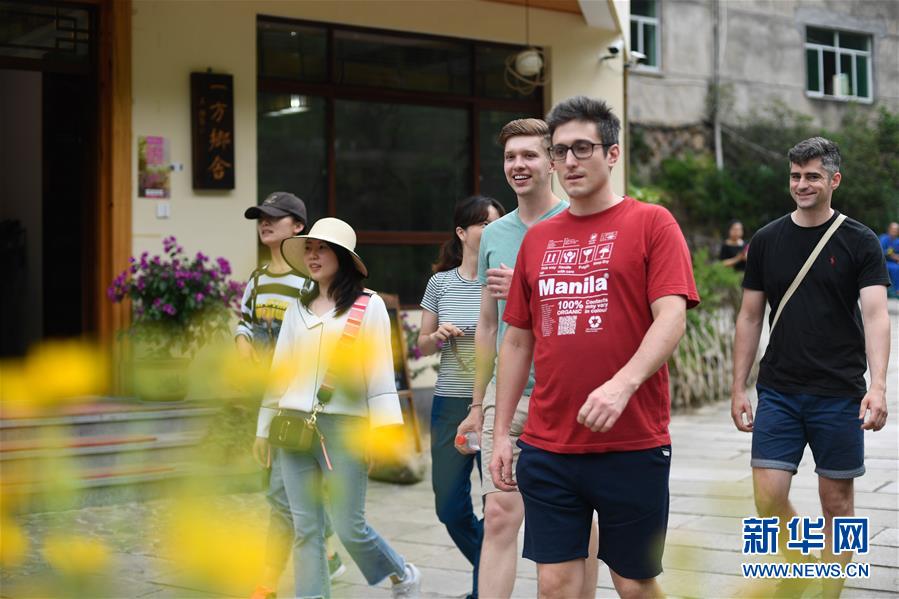 中外游客在石舍村游覽(5月25日攝)。 石舍村是浙江省桐廬縣富春江鄉(xiāng)村慢生活體驗區(qū)中的三個村落之一,位置偏僻,依溪而居,風景秀美。近年來,石舍村結(jié)合古建筑保護工作,在清潔、美化村莊的基礎(chǔ)上,對一些廢棄古建筑進行修繕,引入咖啡館、民宿等文化創(chuàng)意類項目,優(yōu)良的生態(tài)環(huán)境和濃郁的文化氛圍吸引大批游客前來體驗,小山村走上了一條發(fā)展美麗經(jīng)濟之路。2018年,石舍村接待游客10萬8千余人次,旅游經(jīng)營凈收入1260余萬元。 新華社記者 黃宗治 攝