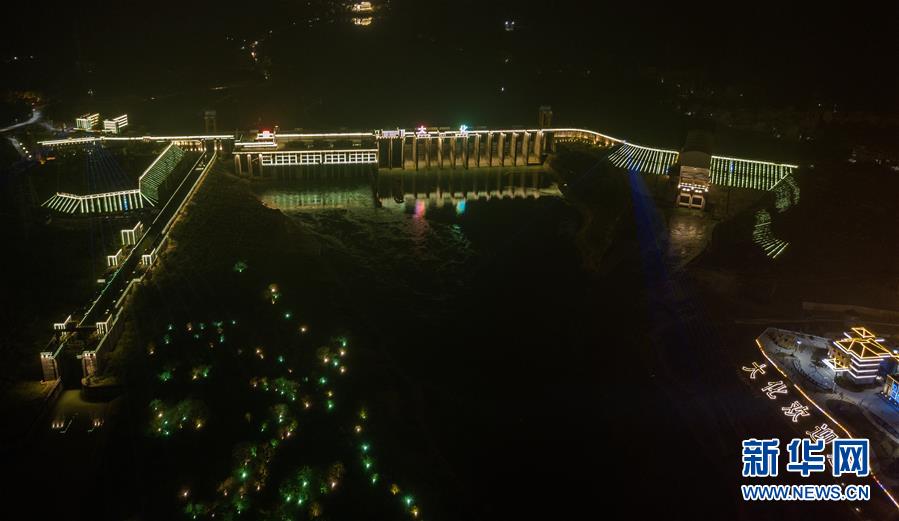 這是位于廣西大化縣境內(nèi)的大化水電站夜景(10月21日無人機(jī)拍攝)。廣西紅水河是我國十二大水電基地之一,目前建有天生橋一級、天生橋二級、平班、龍灘、巖灘、大化、百龍灘、樂灘、橋鞏、大藤峽10個大型梯級電站及下游西江上的長洲水利樞紐。這些水電站既是我國“西電東送”的主力軍之一,又對珠三角地區(qū)遠(yuǎn)離洪災(zāi)侵襲有著重要的調(diào)節(jié)功能。近期,新華社記者用無人機(jī)從空中俯瞰這些水電基地群,呈現(xiàn)它們的別樣之美。新華社記者 張愛林 攝