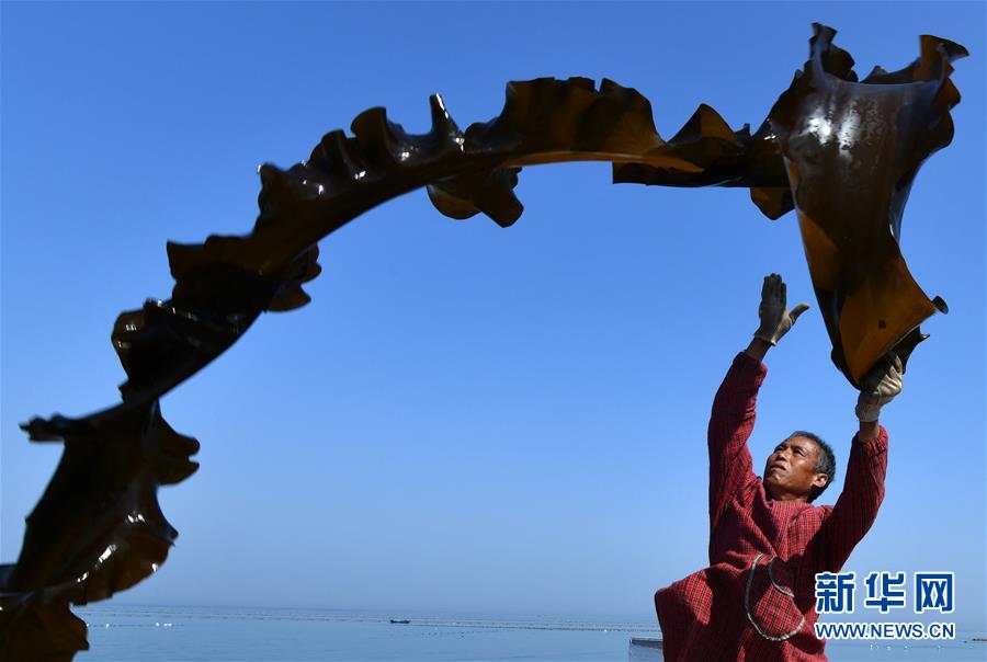海島居民在晾曬海帶(5月23日攝)。新華社記者 朱崢 攝