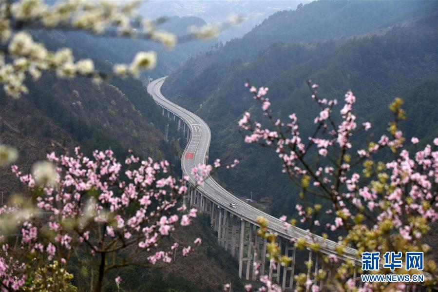 貴州思劍高速公路劍河縣岑松鎮(zhèn)段的春季景觀(3月23日攝)。陽春時(shí)節(jié),貴州思(南)劍(河)高速公路劍河縣岑松鎮(zhèn)附近的桃花和梨花陸續(xù)開放。 新華社記者楊文斌攝