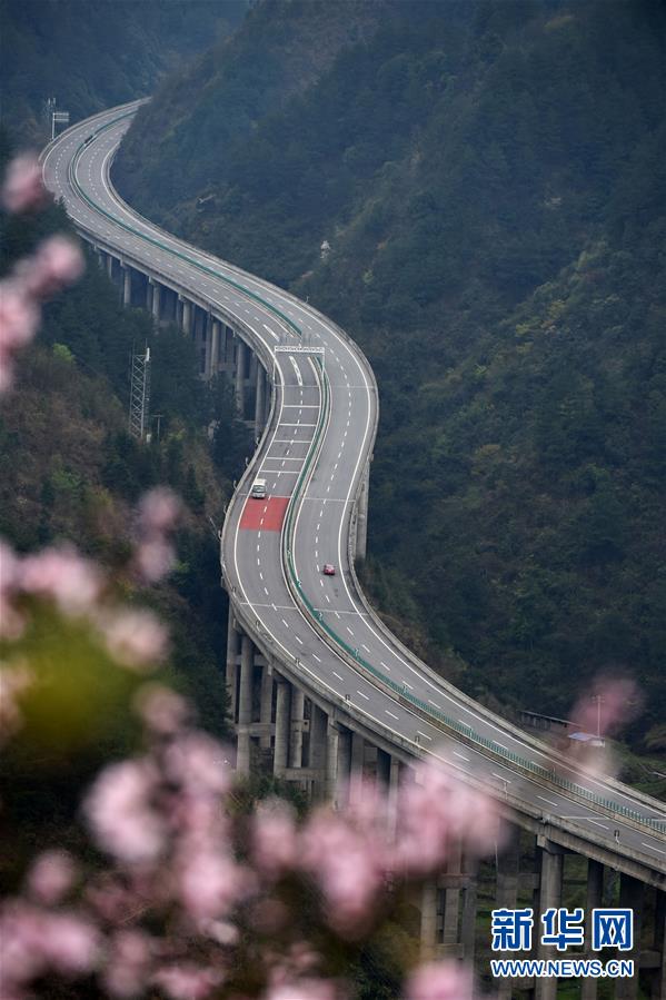 貴州思劍高速公路劍河縣岑松鎮(zhèn)段的春季景觀(3月23日攝)。陽春時(shí)節(jié),貴州思(南)劍(河)高速公路劍河縣岑松鎮(zhèn)附近的桃花和梨花陸續(xù)開放。 新華社記者楊文斌攝