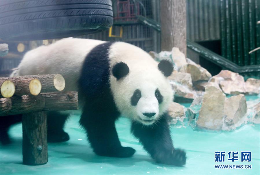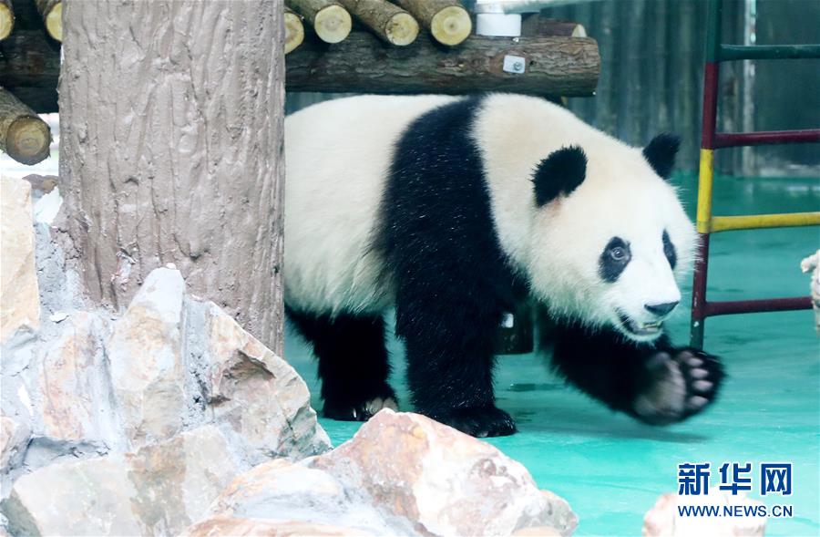 6月18日,大熊貓“和風(fēng)”在裝修一新的大熊貓館內(nèi)散步。 當(dāng)日,來自四川的大熊貓兄弟“和風(fēng)”與“星光”飛抵上海,正式開始了在上海動物園為期三年的生活。為迎接這對“風(fēng)光兄弟”,上海動物園將原有的大熊貓館擴建并裝修一新,空調(diào)、水池、游樂場以及竹葉儲存間等配置齊全。 新華社記者 方喆 攝