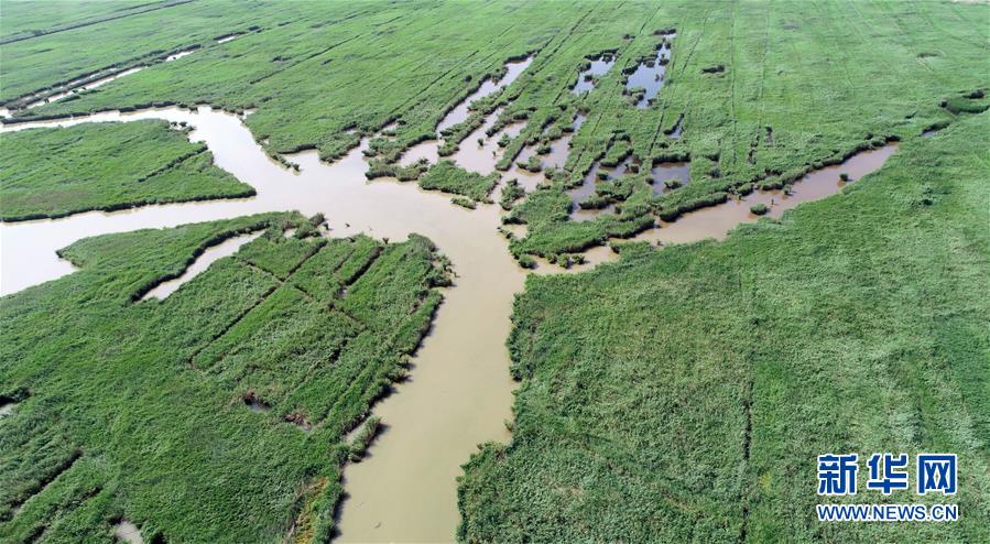 這是天津市寧河區(qū)七里海濕地局部景觀(6月22日無(wú)人機(jī)拍攝)。新華社記者 岳月偉 攝