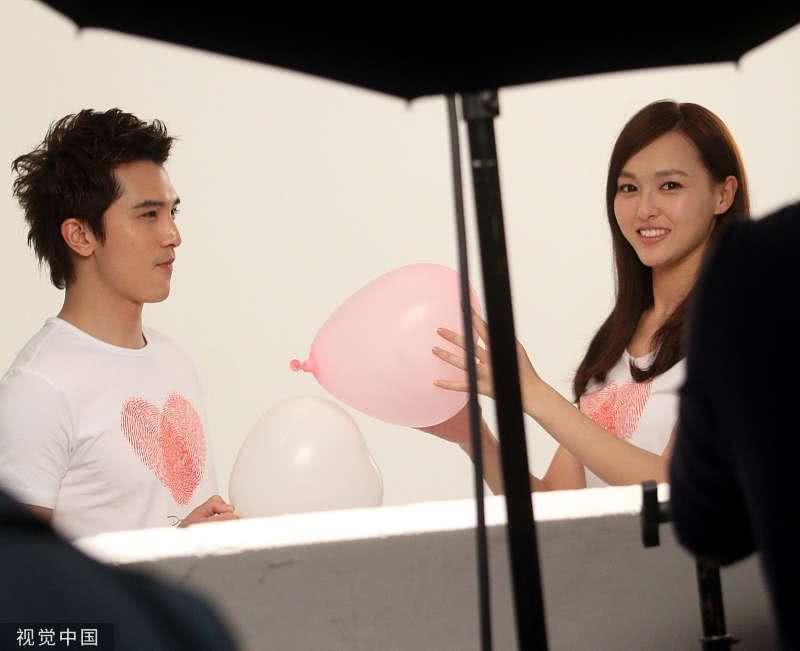 2012年05月22日訊,上海,5月21日,明星拍攝廣告。當天,唐嫣與當時的緋聞男友邱澤在上海某攝影棚拍攝廣告。