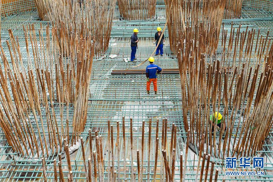 中鐵大橋局施工人員在湛江調(diào)順跨海大橋西岸主塔墩承臺(tái)綁扎鋼筋(7月6日攝)。 湛江調(diào)順跨海大橋的東岸主塔墩承臺(tái)日前順利建成,大橋步入主塔塔柱施工階段。調(diào)順跨海大橋?yàn)閺V東省重點(diǎn)工程,大橋跨越湛江灣連接湛江市調(diào)順島及海東新區(qū),主橋?yàn)殡p塔雙索面斜拉橋,主塔高136.9米,全長(zhǎng)約9.36公里。 新華社記者 劉大偉 攝
