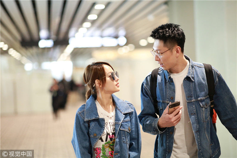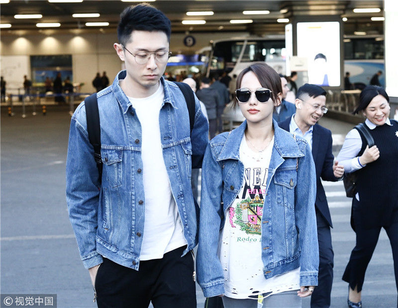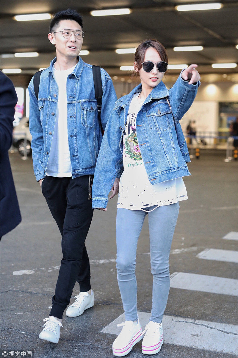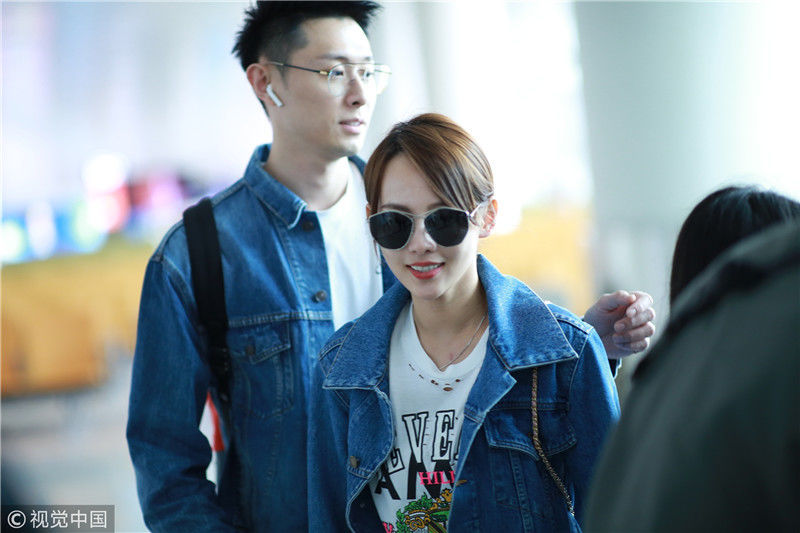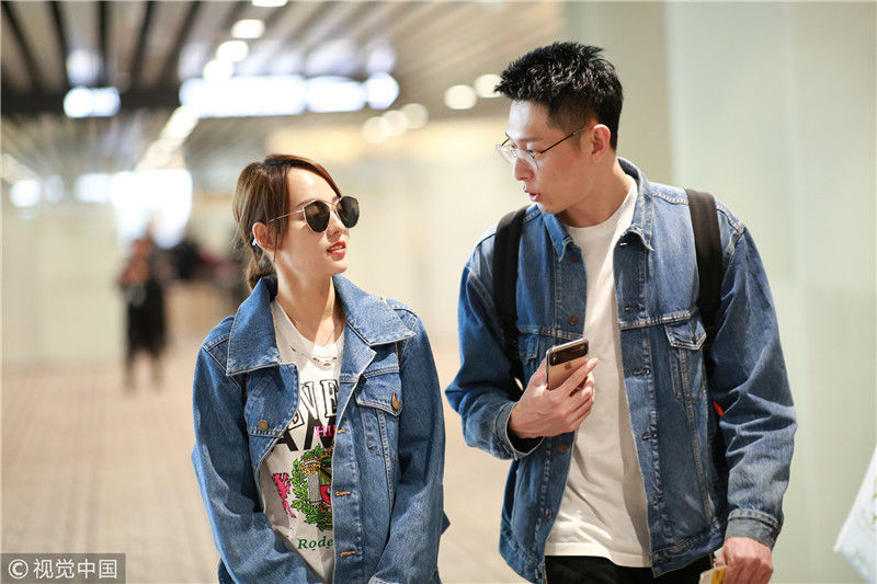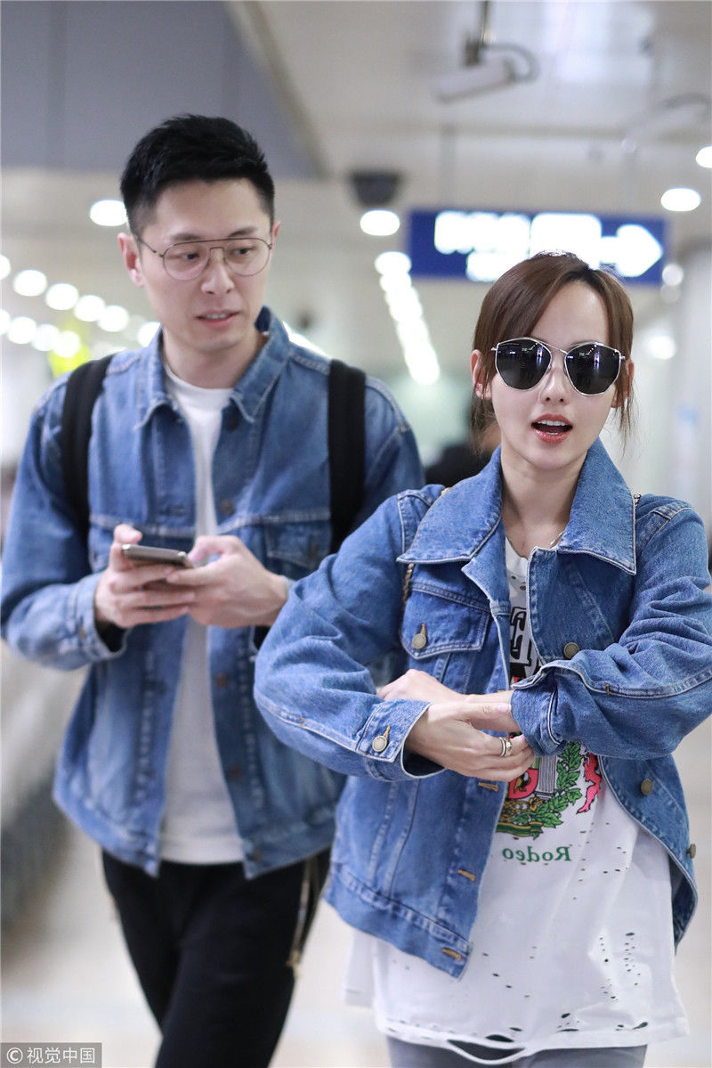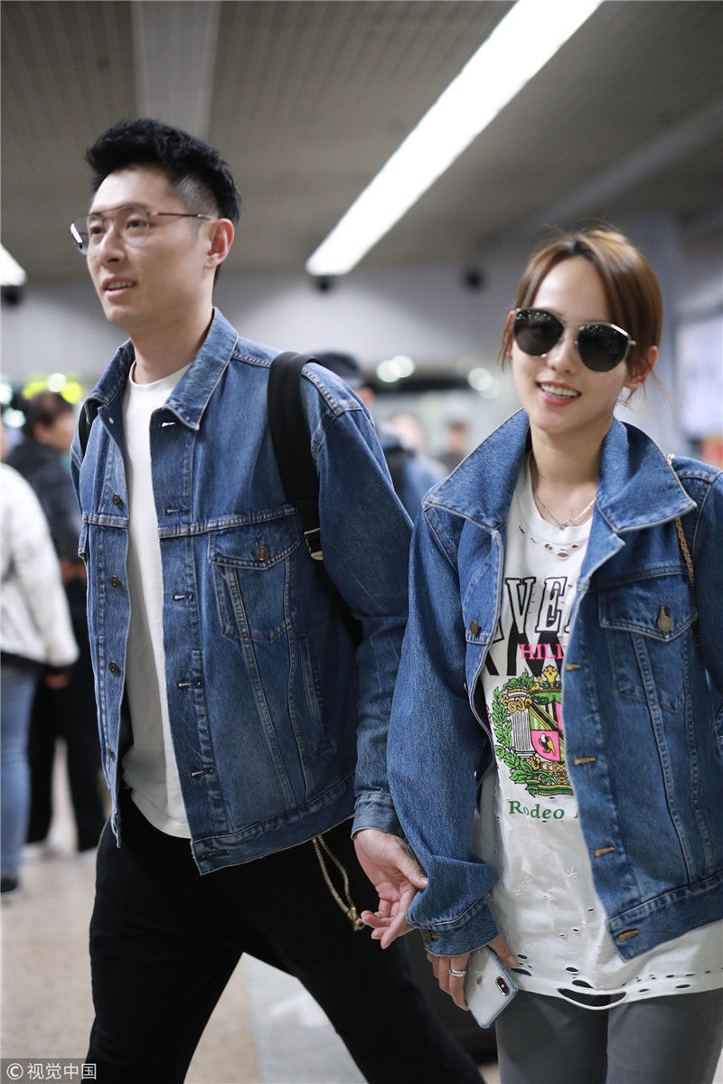 2019年4月1日,張嘉倪與老公買超現(xiàn)身機(jī)場,從廣州飛往北京。兩人同穿情侶牛仔裝,一路對視熱聊感情超甜,張嘉倪對鏡頭熱情揮手舉公仔,親和力MAX。匿名/視覺中國編輯/陳進(jìn)
