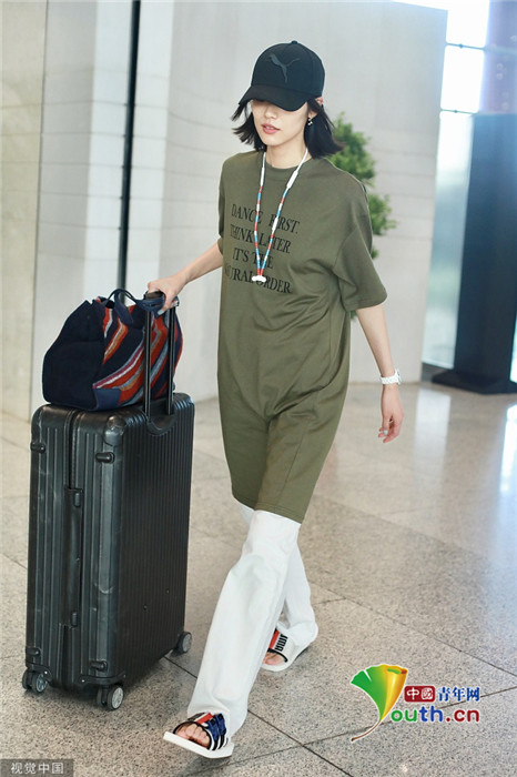 2019年7月23日,北京,劉雯現(xiàn)身機場。她頭戴棒球帽,身穿oversize上衣腳踩拖鞋,走慵懶隨性風,盡顯超模氣場,露出招牌笑容親切又有感染力。