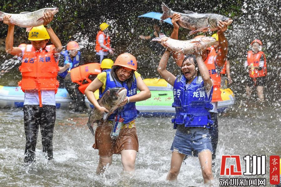 2019年8月2日,廣東清遠(yuǎn),臺風(fēng)“韋帕”不但帶來風(fēng)雨,還給游客帶來捕魚之樂。