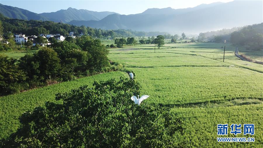 這是8月4日無人機拍攝的安徽黟縣宏村風景區(qū)附近的農田。新華社記者 張端 攝