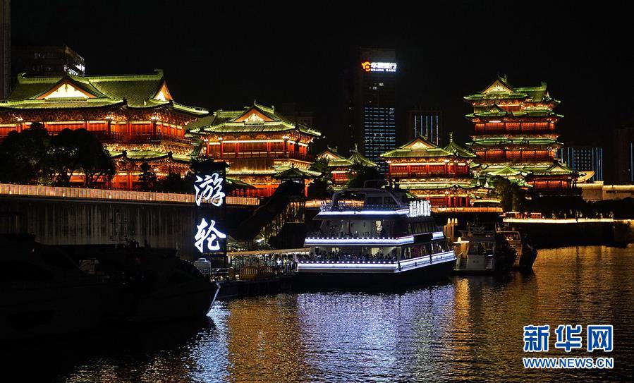 這是江西南昌贛江畔上演的燈光秀(8月6日攝)。 夏季,江西南昌市贛江畔高樓燈光璀璨,五光十色的燈光組成了壯觀的燈光秀,吸引了大批游客。據(jù)介紹,近年來,南昌為發(fā)展“夜經(jīng)濟(jì)”,著力打造夜游項(xiàng)目,夜游項(xiàng)目以滕王閣為核心,借助贛江兩岸景觀照明,結(jié)合同步音效,打造立體、動(dòng)態(tài)、富有江西元素的風(fēng)景,讓游客感受夜景的美麗和江西的歷史文化。 新華社記者 萬象 攝