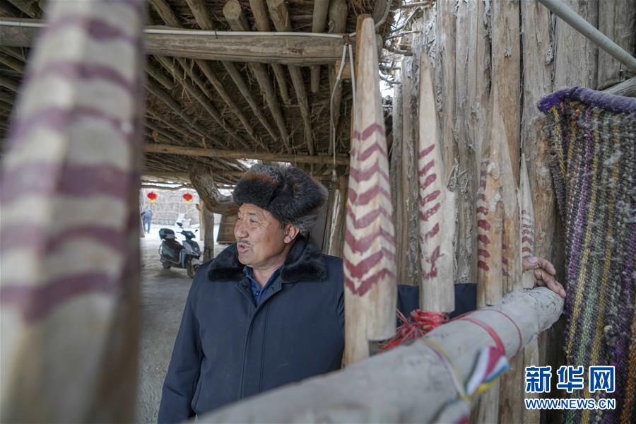 阿木東·艾不東在羅布人村寨的家里(1月29日攝)。他家的裝修都突出了當(dāng)?shù)匚幕P氯A社記者 趙戈 攝