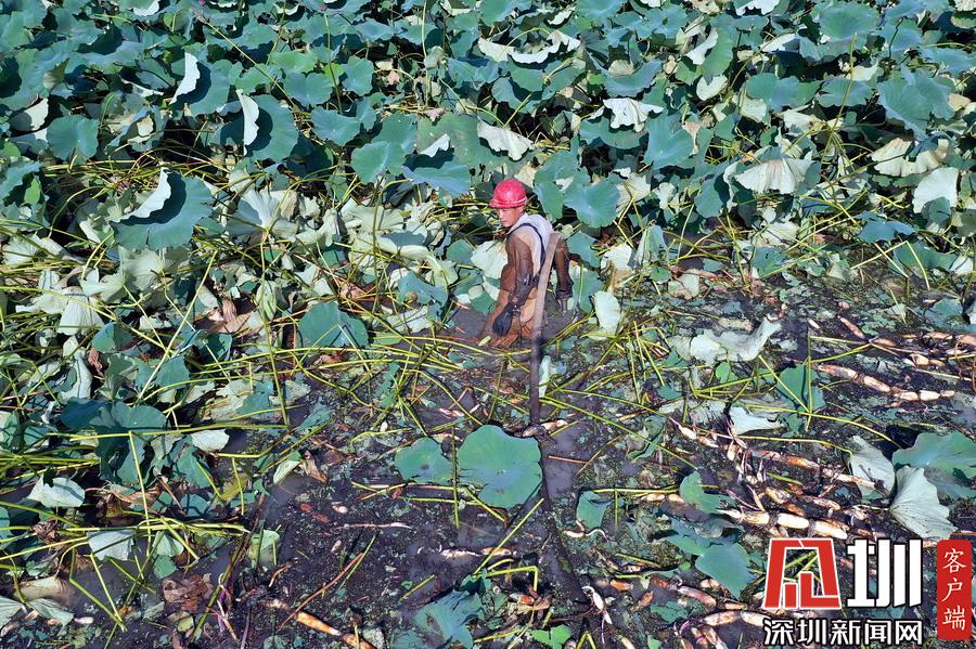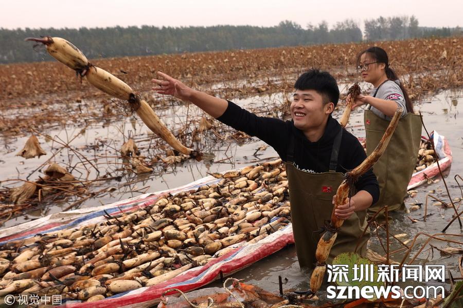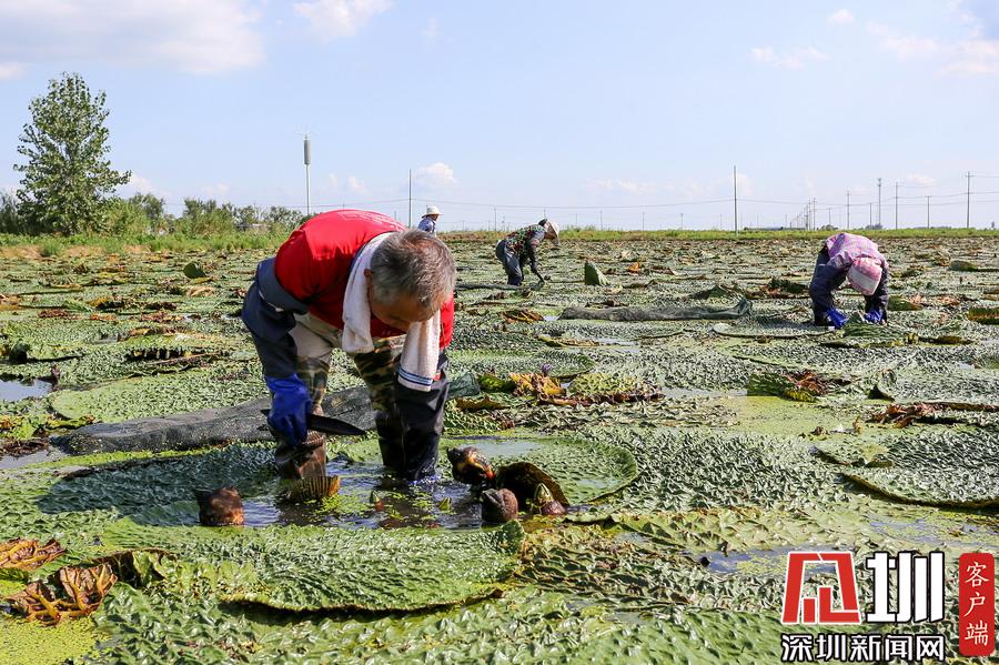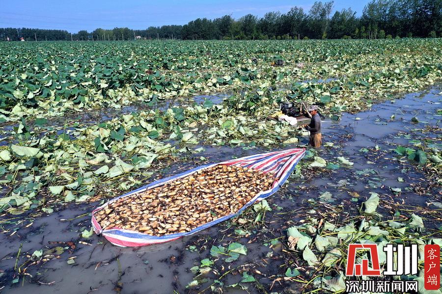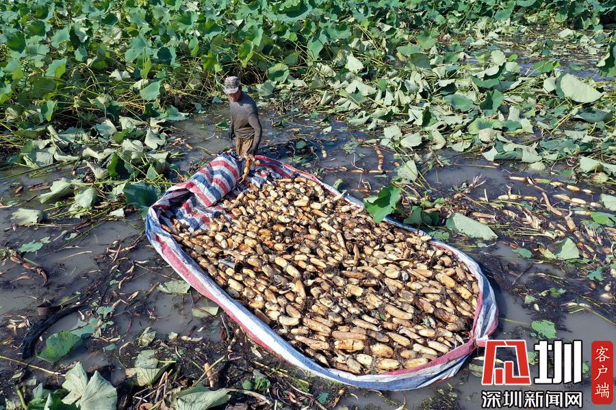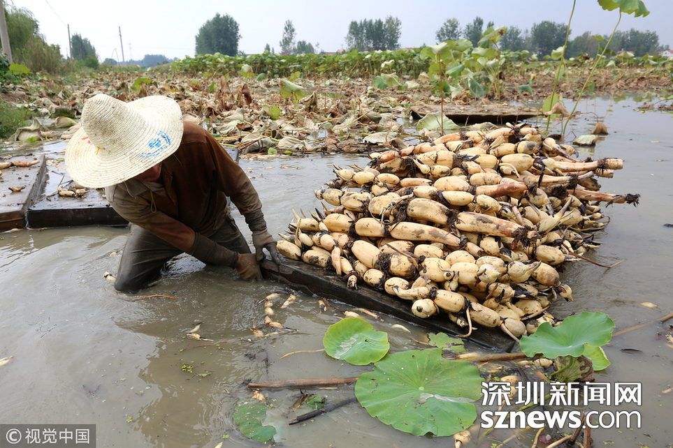 藕農(nóng)泥中“掘金”初秋時(shí)節(jié)采藕忙