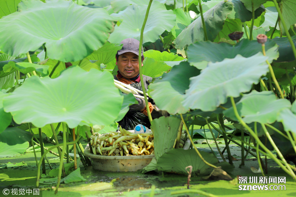相關(guān)鏈接  烈日下的采藕人 每天采摘千斤荷藕