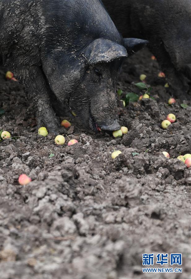 這是8月20日拍攝的果園內散養(yǎng)的水果香豬。新華社記者 王昊飛 攝