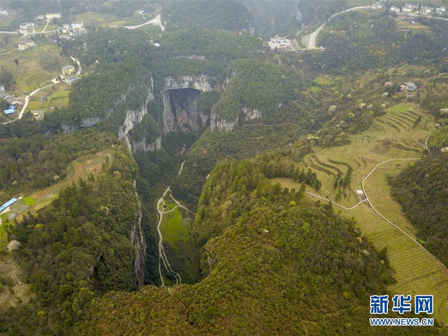 這是3月27日拍攝的天生三橋景區(qū)(無(wú)人機(jī)拍攝)。 新華社記者劉潺攝