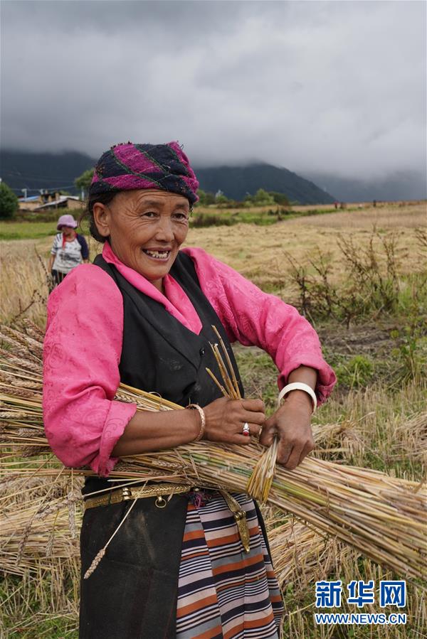 乃村村民在收割小麥(8月26日攝)。新華社記者 多吉占堆 攝