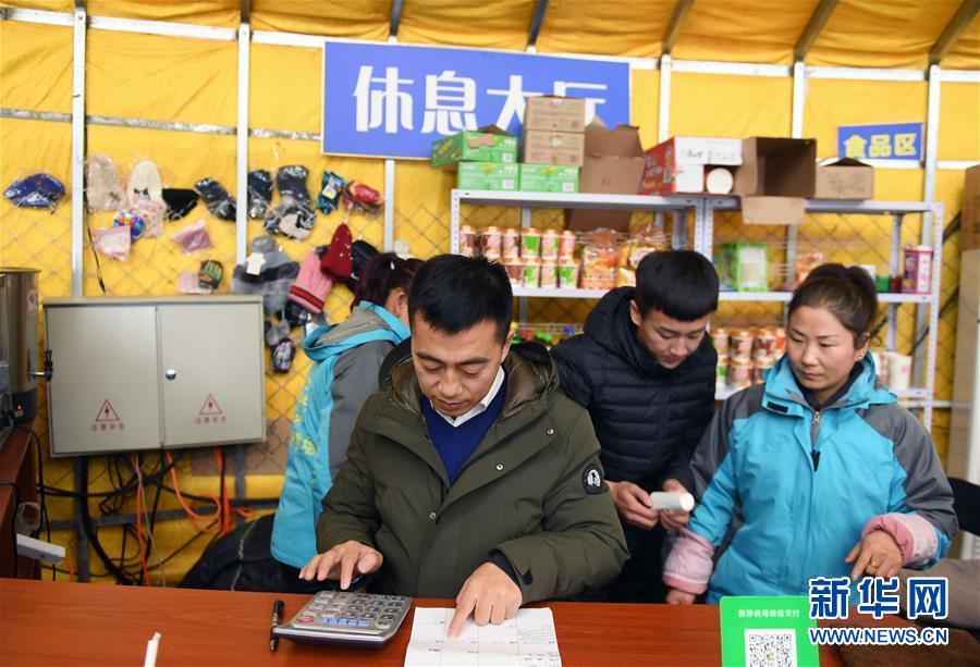 閆守來在滑雪場休息大廳內(nèi)統(tǒng)計賬目(1月25日攝)。閆守來原本在周邊村鎮(zhèn)經(jīng)營滑雪場,在看到二合雪鄉(xiāng)的發(fā)展機(jī)遇后,便將滑雪場生意搬到了這里。他的滑雪場2017至2018年雪季收入60余萬元。新華社記者林宏攝
