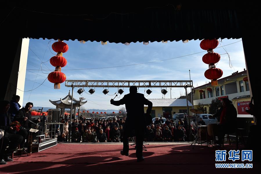 在武鄉(xiāng)縣大有鄉(xiāng)王莊溝村,村里請來的劇團(tuán)在文化劇場為村民演出(2月16日攝)。新華社記者 詹彥 攝