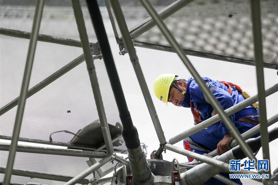 8月28日,工作人員在對FAST反射面板進(jìn)行檢修。 新華社記者 歐東衢 攝