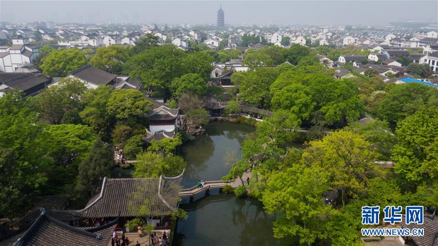 4月17日無人機(jī)拍攝的蘇州拙政園。 新華社記者李響攝