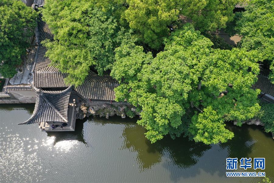 這是無人機拍攝的蘇州滄浪亭景色(5月10日攝)。 新華社記者 季春鵬 攝