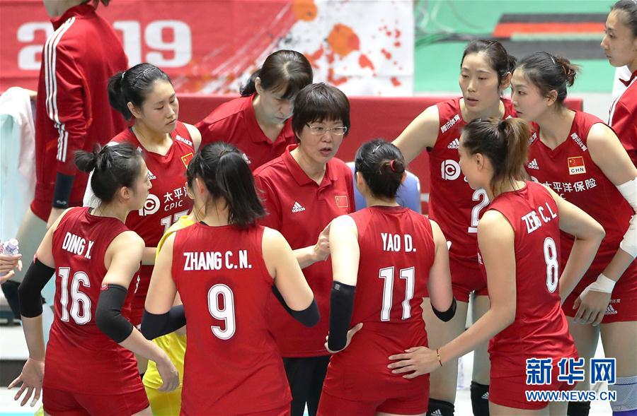 9月23日,中國隊(duì)主教練郎平(中)在比賽間隙指導(dǎo)球員。當(dāng)日,在日本札幌舉行的2019年女排世界杯賽第二階段A組循環(huán)賽中,中國隊(duì)以3比0戰(zhàn)勝美國隊(duì)。新華社記者杜瀟逸攝