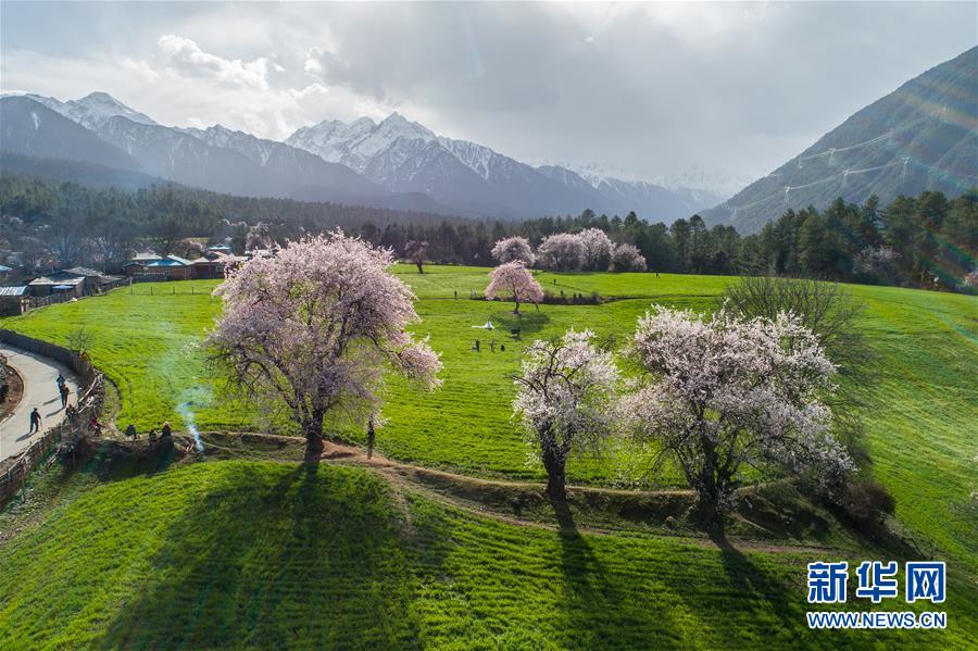 拉薩周邊山谷的桃花盛開(4月18日攝)。新華社記者普布扎西攝