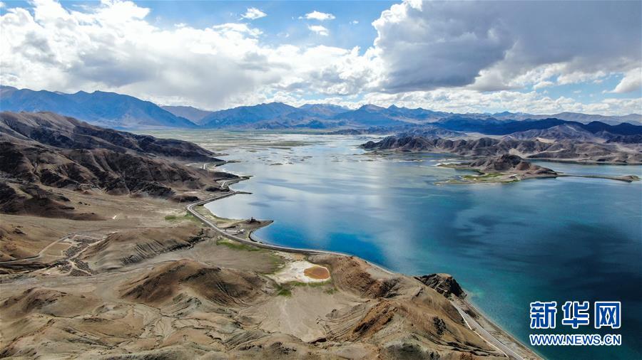 普姆雍錯(cuò)湖緊挨著公路,是自駕游的理想目的地(9月19日無人機(jī)拍攝)。新華社記者晉美多吉攝