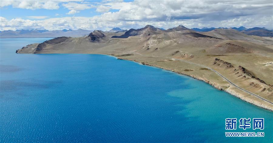 普姆雍錯湖緊挨著公路,是自駕游的理想目的地(9月19日無人機(jī)拍攝)。新華社記者晉美多吉攝