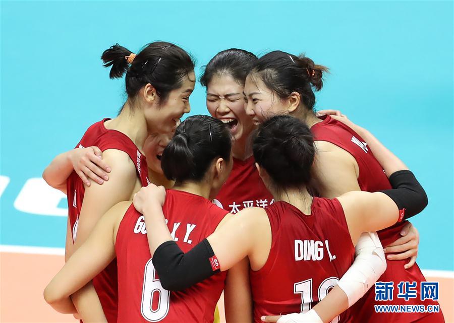 9月22日,中國(guó)隊(duì)球員賽后慶祝勝利。當(dāng)日,在日本札幌舉行的2019年女排世界杯賽第二階段A組循環(huán)賽中,中國(guó)隊(duì)以3比2戰(zhàn)勝巴西隊(duì)。新華社記者杜瀟逸攝