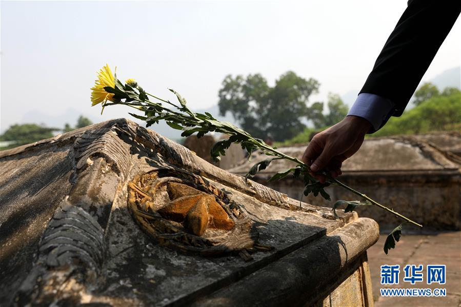 9月30日,在越南北部河南省,人們用鮮花祭奠中國援越烈士。 中國駐越南大使館館員、中國援越老戰(zhàn)士及其親屬、在越中資機(jī)構(gòu)和留學(xué)生代表等30日前往位于越南河南省的金榜烈士陵園,祭奠長眠于此的14名中國援越烈士。越中友協(xié)副主席阮榮光等越方代表也參加了祭掃活動(dòng)。 新華社記者 王迪 攝