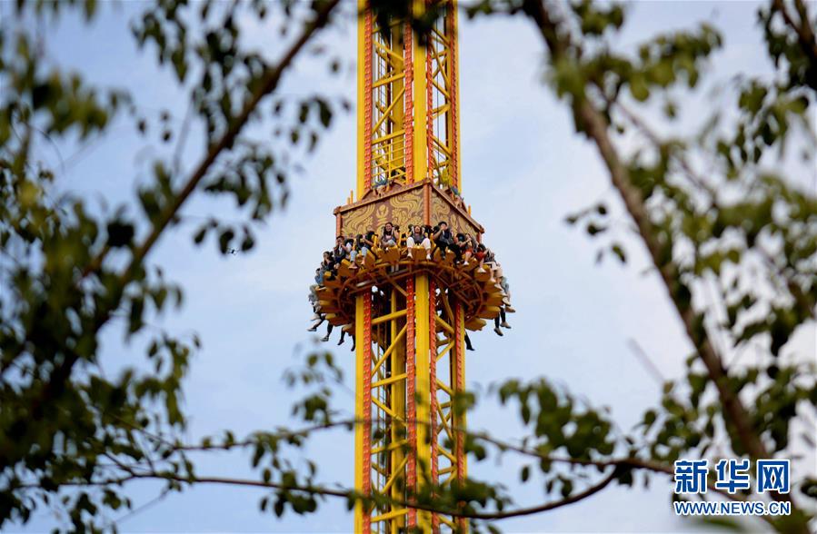 10月3日,游客在河北邯鄲市磁縣方特主題公園內(nèi)游玩。 當日是國慶假期第三天,人們紛紛走出家門,樂享假期。 新華社記者 王曉 攝