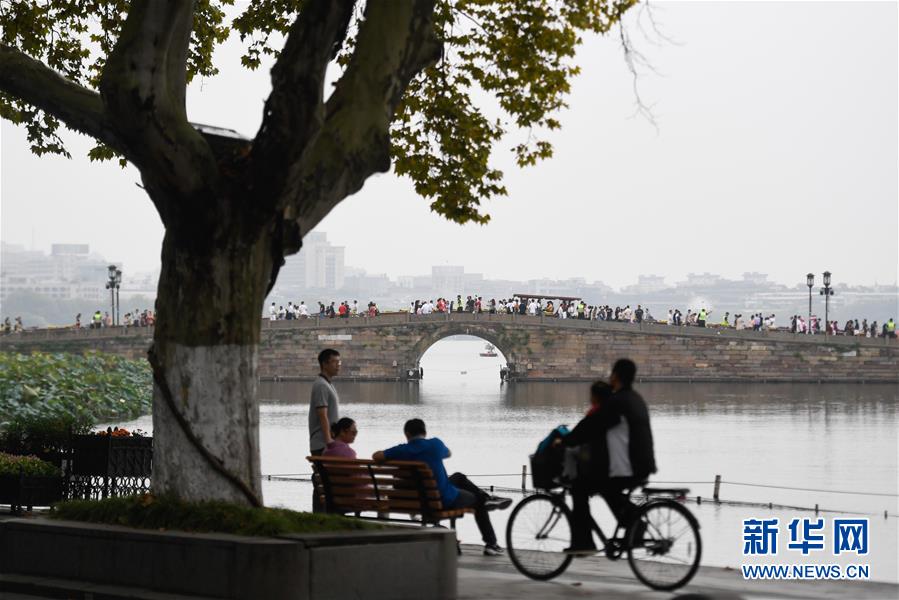 10月7日,杭州西湖風(fēng)景區(qū)的斷橋上游人絡(luò)繹不絕。